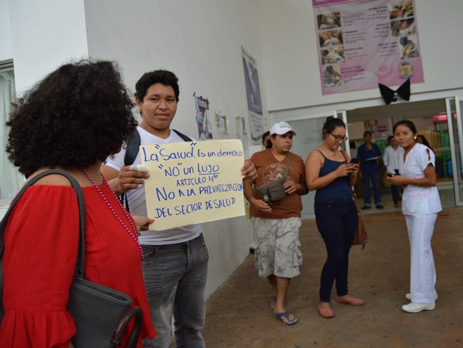 Tal como lo habían anunciado un grupo de médicos del sector Salud realizaron una pequeña manifestación a la entrada del Hospital General de Chetumal en solidaridad al paro nacional convocado por el movimiento #YoSoy17, que se realizó simultáneamente en todos los estados del país, esto en protesta por las reformas a la salud que aseguran criminalizaría el acto médico.