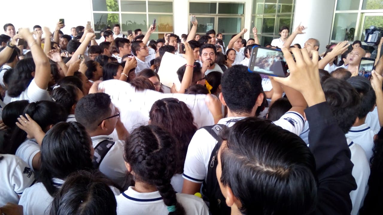 Acompañados por un grupo de maestros, este martes más de un centenar de alumnos del Centro de Bachillerato Tecnológico Industrial y de Servicios (CBTIS 214) de Chetumal marcharon desde su plantel hasta las instalaciones de la Universidad de Quintana Roo (UQROO), donde se manifestaron en protesta por el supuesto despojo de un campo que han utilizado para actividades deportivas por más de 30 años.