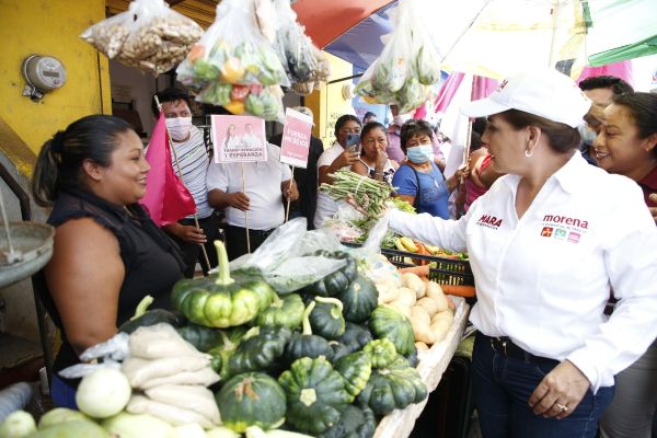En el mercado comentó a vendedores de frutas y hortalizas –aprovechó para comprar calabacitas– que, en apoyo al campo quintanarroense y para impulsar la reactivación económica, promoverá un centro de distribución para que las cosechas locales lleguen al norte del Estado y tener prosperidad compartida. También dijo que se construirá un rastro TIF en apoyo a los productores ganaderos.