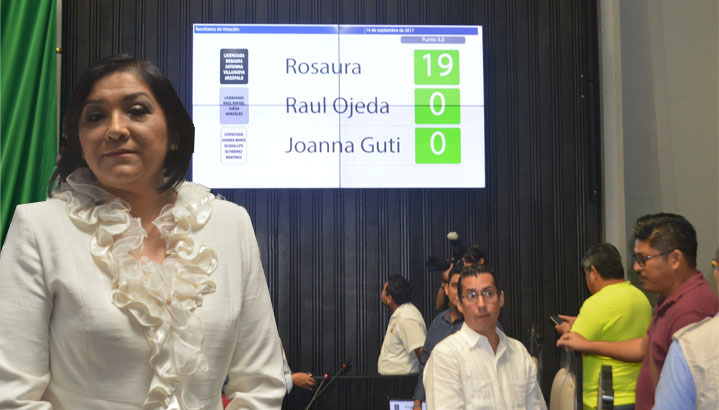 Con el voto unánime de los 19 diputados presentes en la sesión de la XV Legislatura, este jueves fue electa la abogada Rosaura Antonina Villanueva Arzápalo como nueva Fiscal Especial para el Combate a la Corrupción, la cual aseguró que no le temblará la mano para actuar contra funcionarios del actual gobierno.