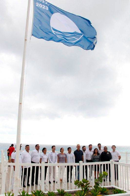 “Cancún se sigue consolidando en primer lugar nacional en sitios con Blue Flag en el país y líder internacional en embarcaciones de turismo sostenible, como resultado del cuidado, atención y esfuerzo por mantener estos espacios naturales a la vanguardia y con altos estándares de calidad”, señaló la Presidenta Municipal, Ana Patricia Peralta, durante la entrega e izamiento de las banderas que se renovaron para la temporada 2022-2023 y distintivos “Eco-Schools” a planteles escolares.