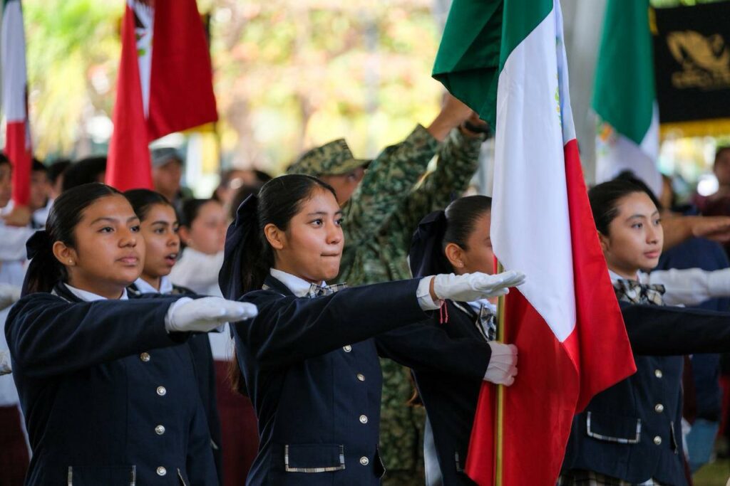 En el marco del 205 (ducentésimo quinto) aniversario del Día de la Bandera, la gobernadora Mara Lezama Espinosa encabezó en Cancún la ceremonia cívica conmemorativa, donde convocó a las juventudes a asumir un papel activo en la construcción de la paz todos los días, el respeto y la unidad nacional.