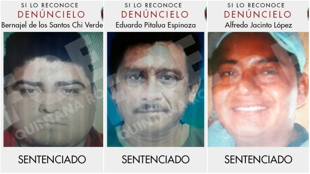 La Fiscalía General del Estado, a través de la Fiscalía Especializada en Investigación de Secuestros informa que derivado del trabajo realizado por personal de las áreas operativas de esta institución se logró que la Cuarta Sala Especializada en Materia Penal del Tribunal Superior de Justicia confirme y aumente la sentencia impuesta por el delito de Secuestro Agravado en contra de Bernajel de los Santos Chi Verde, Eduardo Pitalua Espinoza y José Luis Tejeda López y/o Alfredo Jacinto López, en agravio de un menor de identidad reservada.