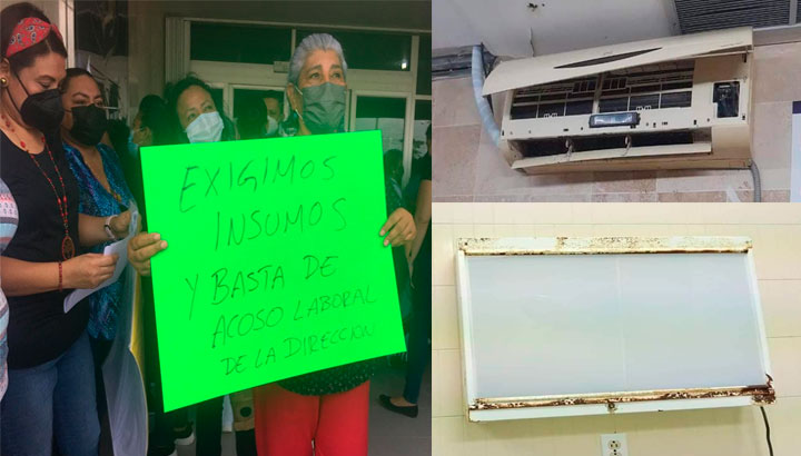 “Es un infierno lo que vivimos los trabajadores y los derechohabientes por estas carencias y condiciones laborales, la clínica se está cayendo a pedazos y las autoridades no hacen nada, llevamos varios meses que no hay aire acondicionado y así estamos laborando y recibiendo pacientes, el calor produce más infección, más bacterias y eso no se ponen a pensar nuestros directivos”.