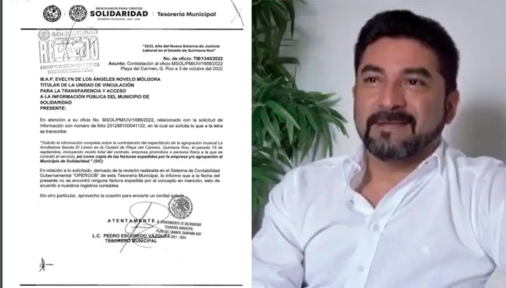 “Solicito la información completa sobre la contratación del espectáculo de la agrupación musical La Arrolladora Banda El Limón en la ciudad de Playa del Carmen, Quintana Roo, del pasado 15 de septiembre, incluyendo monto total del contrato, empresa promotora o persona física a la que se contrató el servicio, así como copia de las facturas expedidas por la empresa y/o agrupación musical al municipio de Solidaridad”. Esta solicitud quedó asentada con el número de folio 231288100041122.