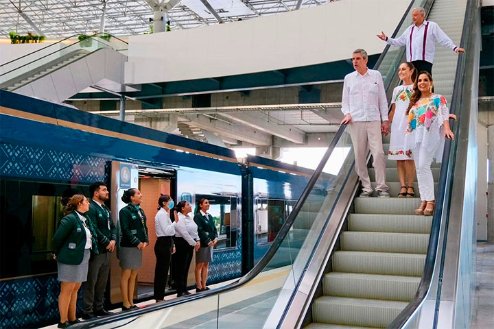 La gobernadora Mara Lezama acompañó al presidente López Obrador en gira por Quintana Roo y Yucatán, que inició con un recorrido a bordo del Tren Maya P’atal de la Estación Cancún Aeropuerto.