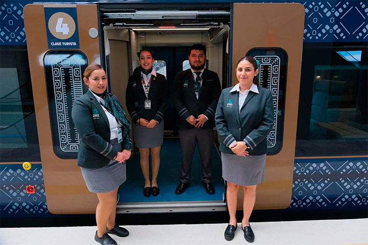 El tren P’atal, palabra maya que significa “permanecer”, fue diseñado para viajes largos por el sureste mexicano; incluye camarotes para que las y los pasajeros puedan dormir durante la jornada, ya que los asientos se convierten en una cama.