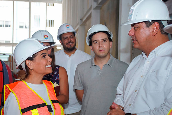 La gobernadora Mara Lezama Espinosa realizó un recorrido por el Teatro de Cancún acompañada del subsecretario de Desarrollo Urbano y Vivienda de la SEDATU, Daniel Fajardo Ortiz, obra que presenta importantes avances y una vez concluida va a generar bienestar social.