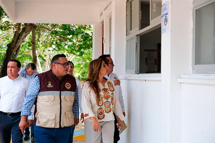 La titular del Ejecutivo recorre todos los rincones del estado supervisando los espacios educativos que se utilizarán como refugios, con personal del Ifeqroo y de Protección Civil, para que sean seguros y cuenten con todo lo necesario para dar abrigo a quienes lo requieran.