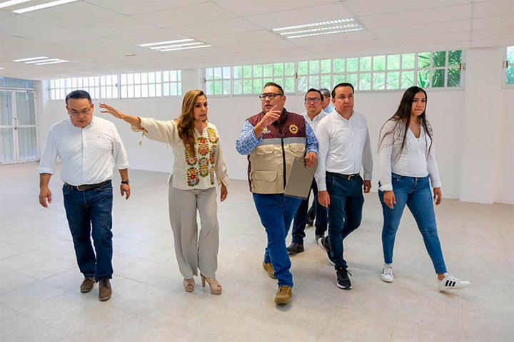 La gobernadora Mara Lezama Espinosa visitó el Plantel Conalep que funcionará como uno de los 10 refugios temporales en caso de ser necesario durante esta temporada de lluvias y huracanes que iniciará en los próximos días.