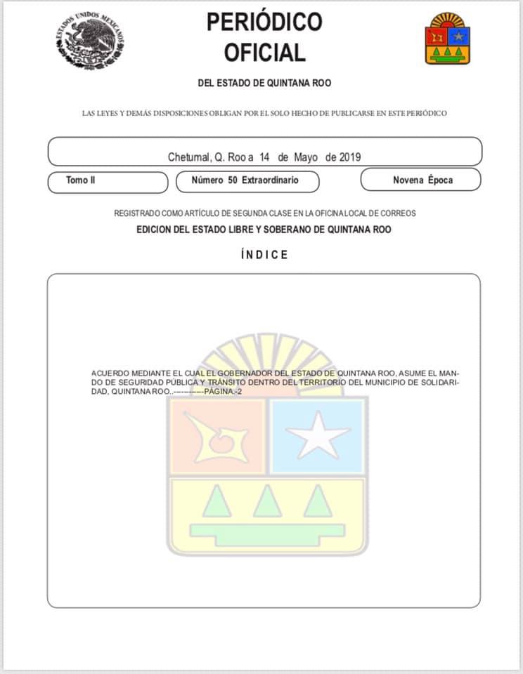 El gobernador tomó la decisión de asumir el mando de la Dirección de Seguridad Pública en Solidaridad “ante la situación de emergencia que se vive”, de forma temporal, y con el propósito de restablecer el orden público y resguardar la seguridad de las personas, según anunció esta tarde en conferencia de prensa.