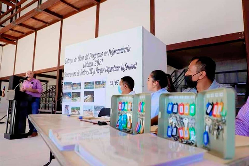 Como parte de un paquete de cinco obras importantes para los ciudadanos de Felipe Carrillo Puerto, el representante en Quintana Roo de la Secretaría de Desarrollo Territorial y Urbano (Sedatu) Ernesto Pavón Gutiérrez y la presidenta municipal Mary Hernández, firmaron las actas de entrega recepción del Teatro, Centro de Desarrollo Comunitario y Parque Infonavit.