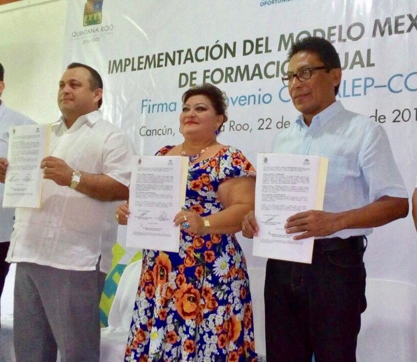El segundo y más importante paso se logró el pasado viernes con la firma en Cancún del convenio de colaboración con el Consejo Coordinador Empresarial del Caribe, presidido por el empresario Eloy Peniche Ruiz, quien también reconoció la importancia de fortalecer el recurso humano en los procesos de productividad que ofrece este modelo educativo.